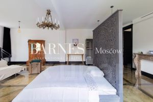 Жилая зона представлена четырьмя просторными мастер-спальнями. В СПА зоне плавательный бассейн размером 16 х4,6 метра, хамам, гидромассажная ванна. Помимо жилой зоны и СПА в доме имеются просторные помещения в виде двух гостиных, кухни, помещение библиотеки, кабинета, помещения тех. назначения. Из СПА и жилых зон имеется выход на просторные террасы и на эксплуатируемую кровлю.