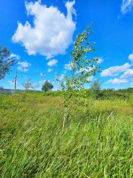 Участок чистый, есть несколько молодых березок и шиповник.