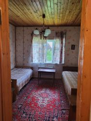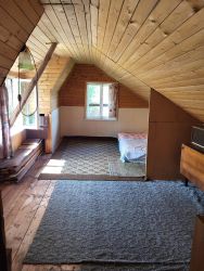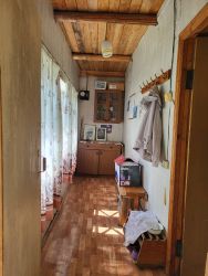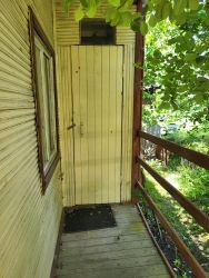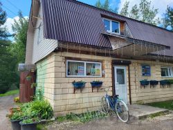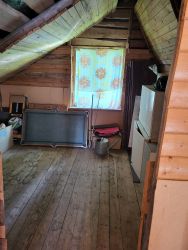Дом каркасно-щитовой, двухэтажный, общей жилой площадью 80 м2. На первом этаже располагается кухня, комната и веранда с витражными окнами. На втором этаже 2 просторные комнаты с видом из окна на сад. Туалет расположен в периметре строения дома, вход с террасы. На участке расположены плодовые кустарники, яблони и скважина на два участка. Свет к дому подведен воздушным путем (СИП -2х16мм от столба на линии) с умным счетчиком. Газ привозной (баллоны).