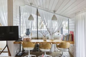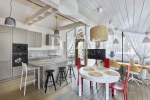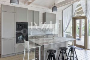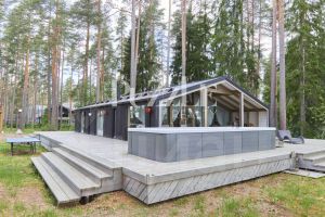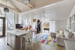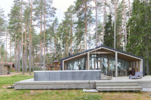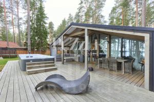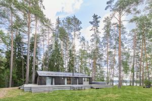 Планировкой дома предусмотрена кухня-гостиная с выходом на террасу и великолепным видом на озеро. Две небольшие спальни , кабинет и с/у.