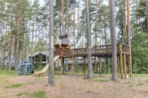 На участке установлен навес для автомобиля , детская площадка и есть еще большая площадь под строительство основного дома.