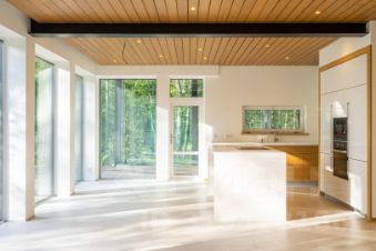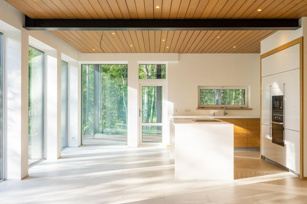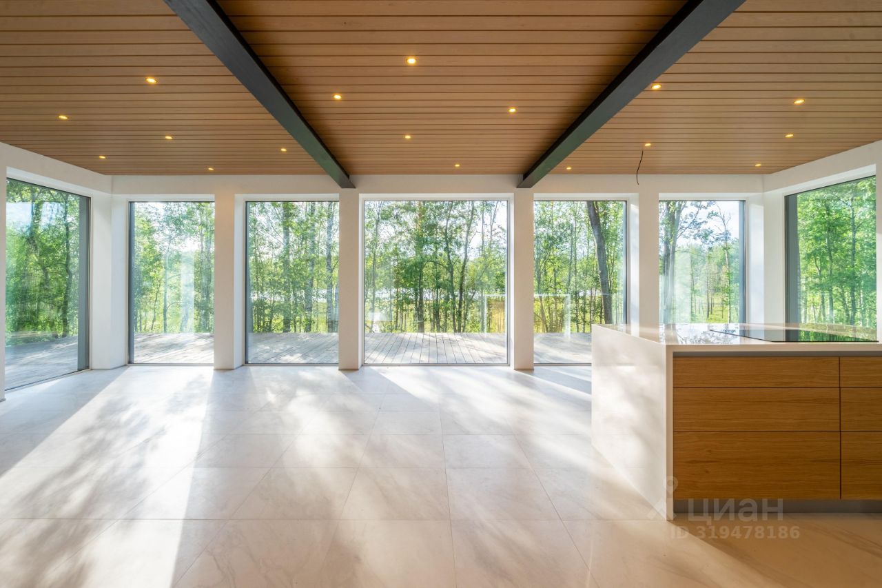 - Коттедж располагается на самом возвышенном видовом участке, с которого открывается панорамный вид на весь поселок и озеро.