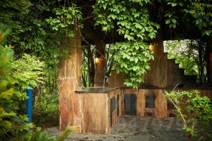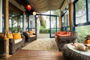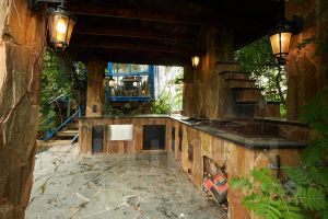 Состоит из террасы с грилем, комнаты отдыха, сан. узел и помывочная.