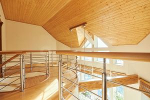 Дом построен из газобетона и клееного бруса.