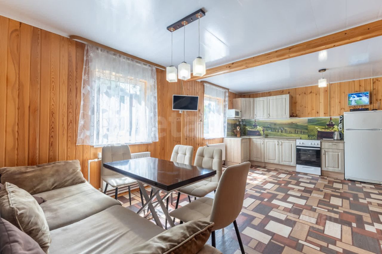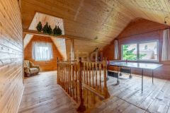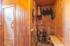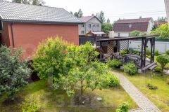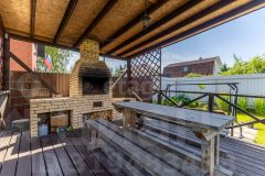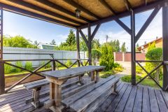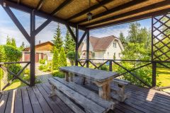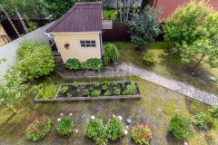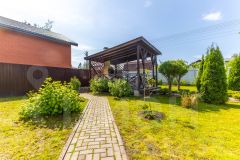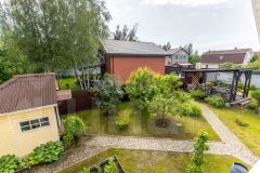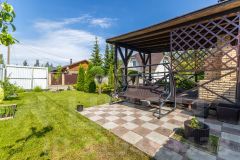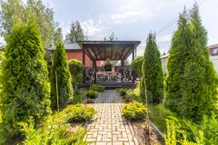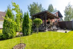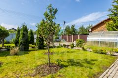 Дача площадью 132 кв. м расположена в черте города, в 30 минутах езды от метро "Проспект Ветеранов". Дом рассчитан на комфортное проживание круглый год: три спальни, просторная кухня-гостиная и лофт-зона на втором этаже для отдыха. Участок благоустроен: газон, дренажная система, дорожки из плитки, парковка на четыре автомобиля. В мангальной зоне под навесом установлен обеденный стол — место для приема гостей. На территории высажены плодовые деревья (слива, черешня, яблони, груши) и декоративные растения (туи, гортензии, лилии, нарциссы). Теплица оборудована автоматическим поливом и системой проветривания, выращиваются огурцы, томаты, тыквы и кабачки.