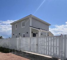 - По периметру участка установлен забор из профнастила, высотой 1,9 м, с лицевой стороны обшит евроштакетником, въезд оборудован откатными воротами и калиткой.
