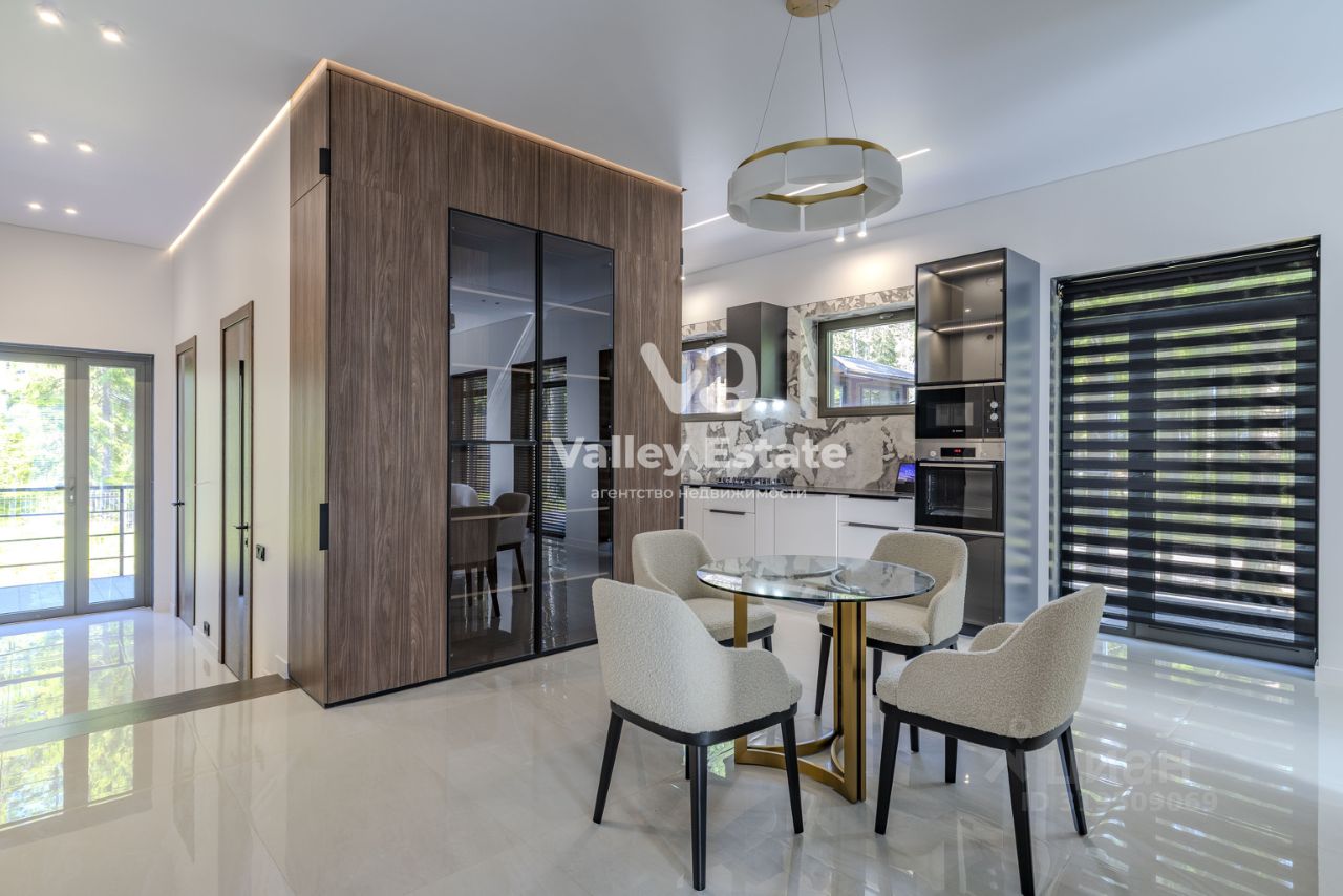 Большая терраса вокруг гостиной станет отличным местом для летних посиделок. В кухне есть небольшая кладовая для хранения домашней утвари и заготовок. Установлен видеодомофон.