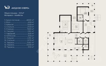 Это пространство станет отличной альтернативой городской квартиры, ведь дом расположен всего в 40 мин от города в поселке Медное озеро.