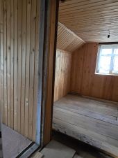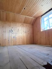 Дом построен из бревна, имеет 2 этажа:( мансарда на 2 эт.).