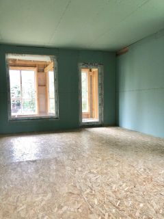 Выполнена стяжка пола, стены ровные и обшиты гипсокартоном. Отделка фасада - клинкерная плитка.