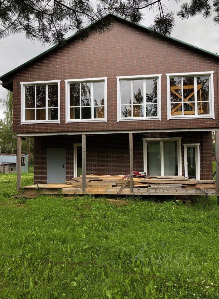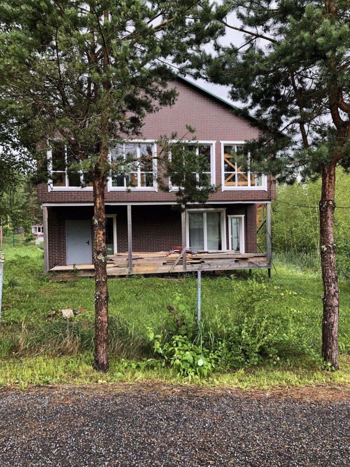 Двухэтажный дом построен по каркасной технологии. Высокий фундамент на сваях.