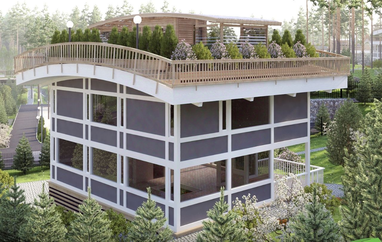 Дом строится по технологии "фахверк" из клееного бруса. Для утепления используется теплоизоляционный материал PIR - огнестойкий материал, обладающий самой низкой теплопроводностью среди всех известных теплоизоляционных материалов. Панорамное остекление выполнено двухкамерными стеклопакетами толщиной 46 мм с теплоудерживающим покрытием.