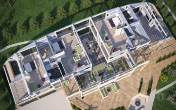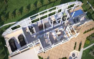 Сейчас заканчивается строительство дома XL по такому проекту на участке 23. Фотографии строительства этого дома выложены вместе с рендерами проекта.