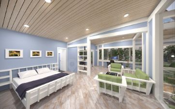 Третий этап строительства - сама чистовая отделка или отделка "под ключ". Она обычно выполняется индивидуально под конкретного заказчика с учетом его вкусов и предпочтений. Это включает чистовую отделку стен, их покраску, укладку керамической плитки в ванных и кварцвиниловой плитки в остальных помещениях, монтаж чистовых потолков, чистовой электрики и сантехники, установку межкомнатных дверей и кухонной мебели, чистовую отделку террасы, крыши, посадку растений.