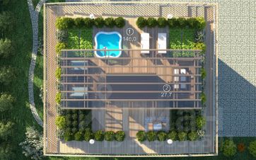 1 - открытые террасы и озеленение на крыше - 146 м2