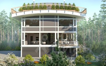 Двухэтажный дом с цоколем и эксплуатируемой кровлей.