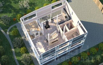 Первый этап строительства дома - "теплый контур" включает в себя возведение фундамента (забивные бетонные сваи), строительство самого дома, его отделка снаружи, панорамное остекление, черновые полы перекрытий, крыша, утепление дома по всему внешнему периметру.