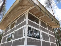Дом строится по технологии "фахверк" из клееного бруса. Для утепления используется теплоизоляционный материал PIR - огнестойкий материал, обладающий самой низкой теплопроводностью среди всех известных теплоизоляционных материалов. Панорамное остекление выполнено двухкамерными стеклопакетами толщиной 46 мм с теплоудерживающим покрытием.