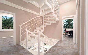 В доме монтируется центральная лестница, ведущая на все этажи и эксплуатируемую кровлю.