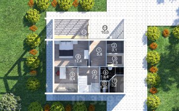 Площадь 49,1 м2 (отапливаемая) 22 м2 (крытая) = 71,1 м2