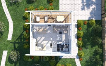 Площадь: 48,6 м2 (отапливаемая) 22 (крытая) = 70,6 м2