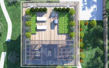1 - открытые террасы и озеленение на крыше - 107 м2
