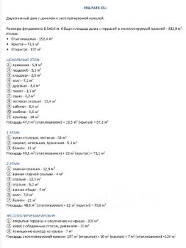 Общая площадь дома с террасой и эксплуатируемой кровлей - 332,9 м2.