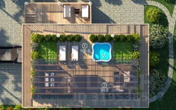 1 - открытые террасы и озеленение на крыше - 100 м2