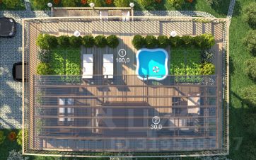 Площадь 61,9 м2 (отапливаемая) 11 м2 (крытая) 31 м2 (открытая) = 103,9 м2