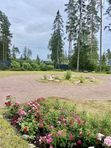 Участок очень живописный , много хвойных деревьев, кустарники, розариум)!