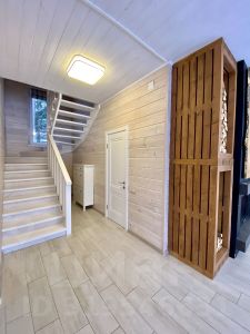 Наружная отделка дома - имитация бруса, окрашена Tikkurila.