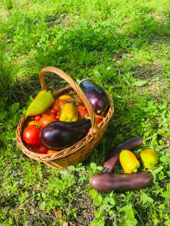 На участке есть плодовые деревья: яблони, груша, а так же красная и черная сморода, малина.