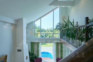 В доме светло и уютно . А за счет второго света и панорамного вида на цветущий сад чувствуется простор и единение с природой.
