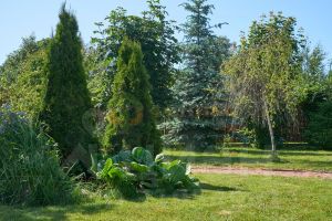 Ландшафтный дизайн и множество высокорослых деревьев: