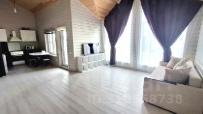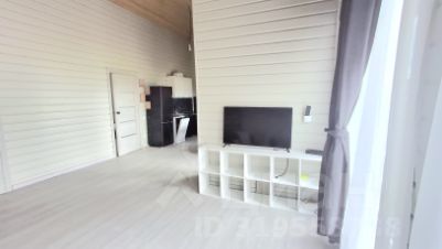 * Кухня-гостиная с высотой потолков 4.5 метра, дорогим кварцвинилом, кухонным гарнитуром, новым холодильником, смарт-ТВ, диваном и тумбой.