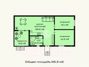 • Общая площадь дома: 65,3 м²