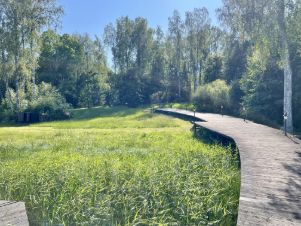 О самой территории СНТ. В самом поселке песчано-гравийное покрытие, но вполне комфортно даже для седанов. СНТ находится на закрытой, охраняемой территории, въезд осуществляется только по пропускам. Имеется своя управляющая компания и служба эксплуатации, которые занимаются обслуживанием дорог, коммуникаций и оперативным решение бытовых вопросов. Сама территория посёлка — это настоящий взрослый смешанный лес, и все дома располагаются в лесу среди деревьев. На всей территории организовано освещение, вывоз мусора, имеется небольшой продуктовый магазинчик, а границы участков оформлены в едином стиле. Вдоль озера идет благоухоженная зона променада с пирсом и собственным пляжем. Для жильцов поселка организовано специальное место для спуска лодок на воду, детские и спортивные площадки.
