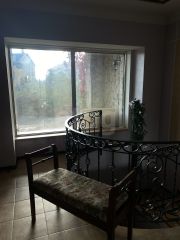 Площадь дома позволяет комфортно разместить большую семью или принимать гостей. По факту дом 550м с учетом нижнего этажа. В распоряжении четыре спальни, два кабинета, три гостевые комнаты, просторная гостиная с обеденной зоной и отдельный блок для персонала с кухней, санузлом и комнатой. Дополнительные удобства включают сауну, оборудованный спортзал, постирочную, погреб и несколько кладовых помещений. Гараж переоборудован в зону отдыха с гардеробной, что добавляет функциональности пространству.