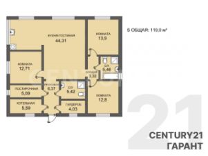 3 отдельные комнаты + просторная кухня-гостиная 44 м²,