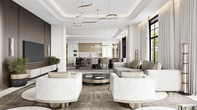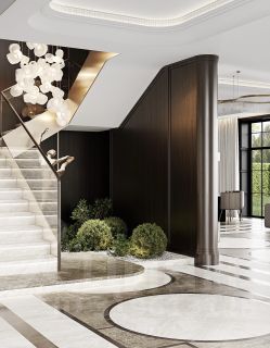 Общая площадь дома составляет 500 квадратных метров, а участок площадью 20 соток расположен прямо рядом с Парком и набережной озера Лахтинский Разлив , что обеспечивает прекрасный вид на парк и Лахта Центр.