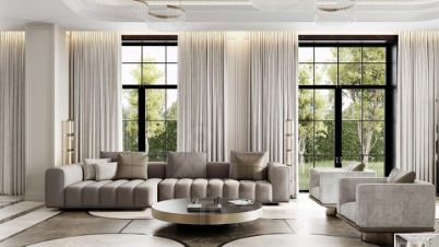 Дом построен по современному проекту. Огромные панорамные окна, потолки высотой 4 метров создают ощущение простора.