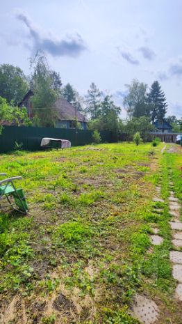 Земля правильной формы, полностью огорожена забором из металлопрофиля, участок хорошо поднят и ухожен.