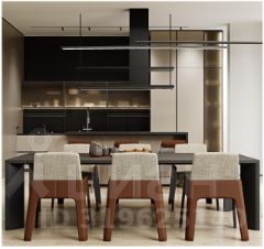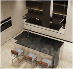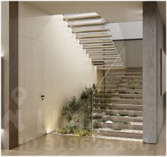 Дом построен по современному проекту. Огромные панорамные окна высотой 7 метров в кухне-гостиной создают ощущение простора. Высота потолков на первом этаже варьируется от 7 до 3 метров. В теплом контуре дома расположена панорамная беседка с настоящим мангалом с видом на Лахта Центр.