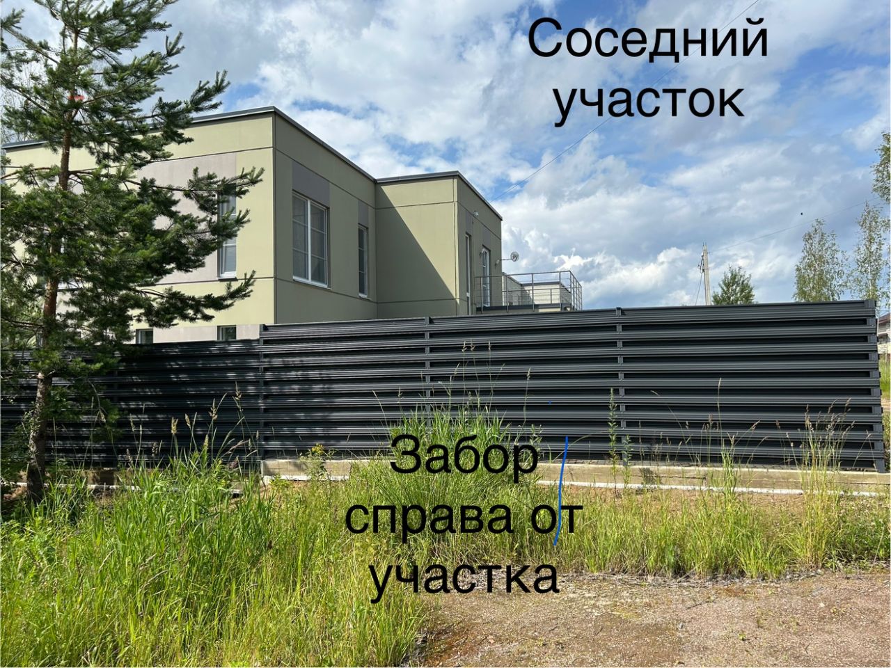 Подьезд с двух сторон можно сделать 2 отдельных дома.На участке сосны. Никаких дополнительных платежей.Адрес: Кузнецовский пр., 24Поселок HolidayLandКрайний в поселкеСухой ровный участок с Соснами.Клубный посёлок всего 39 участков.Заборы во всем посёлке в едином стиле:-Белый металлический штакетник-Много деревьев-Откатные Ворота на въезде в посёлок-Электричество 15 кВт-Газ магистральный 2027 год-Соседи живут постоянно-Основная масса участков 12 соток-Озеро Лада 5-7 мин на велосипедеПо полевой тропинке без трафика машин!На машине тоже есть подъезд к озеруОгромный лес и поле за посёлком есть где покататься на снегоходе или квадроцикле.Участок расположен в 500 м от шоссе, шума от машин не слышно, т.к. до дороги много домов и деревьев.Рядом гольф клуб, Финский заливЛомоносовский парк 5минВ г. Ломоносов 3км есть вся городская инфраструктура, т.к. это район г.Санкт-Петербурга.До заезда на КАД 5мин.