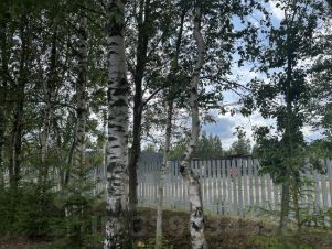 Крайний участок в посёлке в тупике, минимальное количество проезжающих машин, всего 2 соседа, с одной стороны выход в поле и лес.