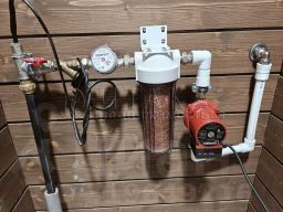 Септик "Антей 4" на улице, вы даже не заметите его присутствия, все работает как обычно, в городской квартире. Электр.15 кв., а взглядом в будущее, в кладовой выведен доп.кабель для подключения 380 вольт, если мощности в СНТ увеличат.