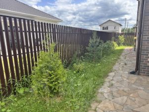Участок обнесен забором штакетник.