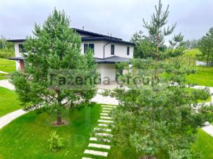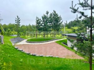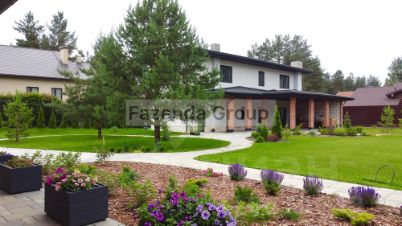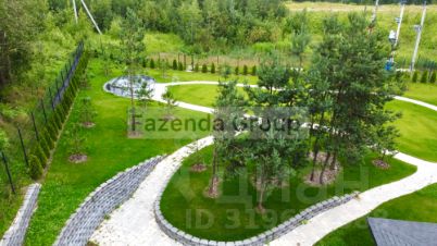 На участке выполнен комплекс ландшафтных работ, организована автоматическая система полива, брусчатка, выполнена подготовка для установки освещения.