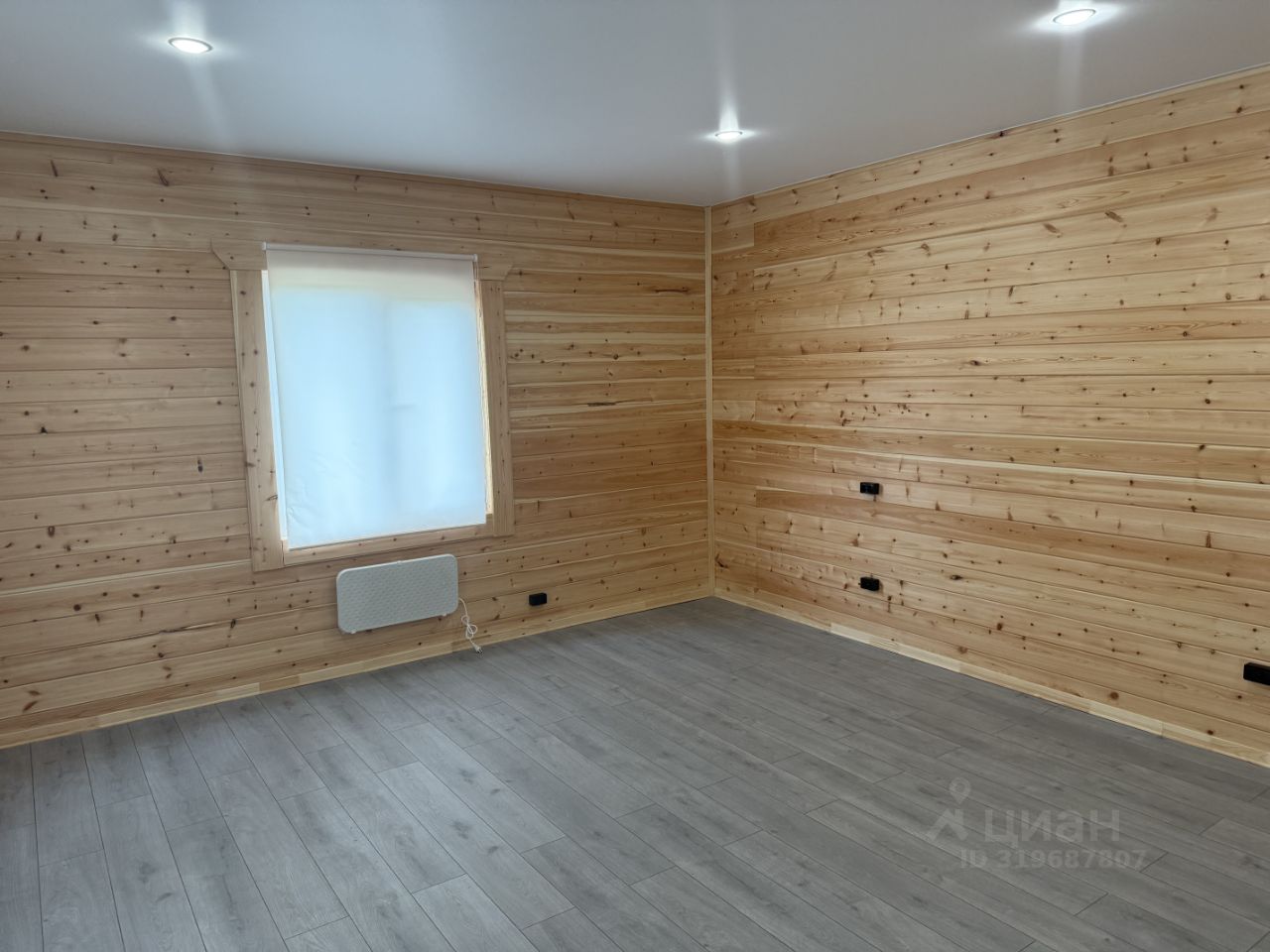 Построен по каркасной технологии, утепление базальтовая вата 150 мм (пол, стены, потолок), кровля клик-фальц, фасад комбинированный - клик-фальц и планкен, окна двухкамерные стеклопакеты. Полная финишная отделка, разведено электричество, горячая и холодная вода (бойлер), канализация, вентиляция в основной комнате и в ванной, отопление электрические батареи. На полу ламинат, стены блок-хаус, потолки натяжные