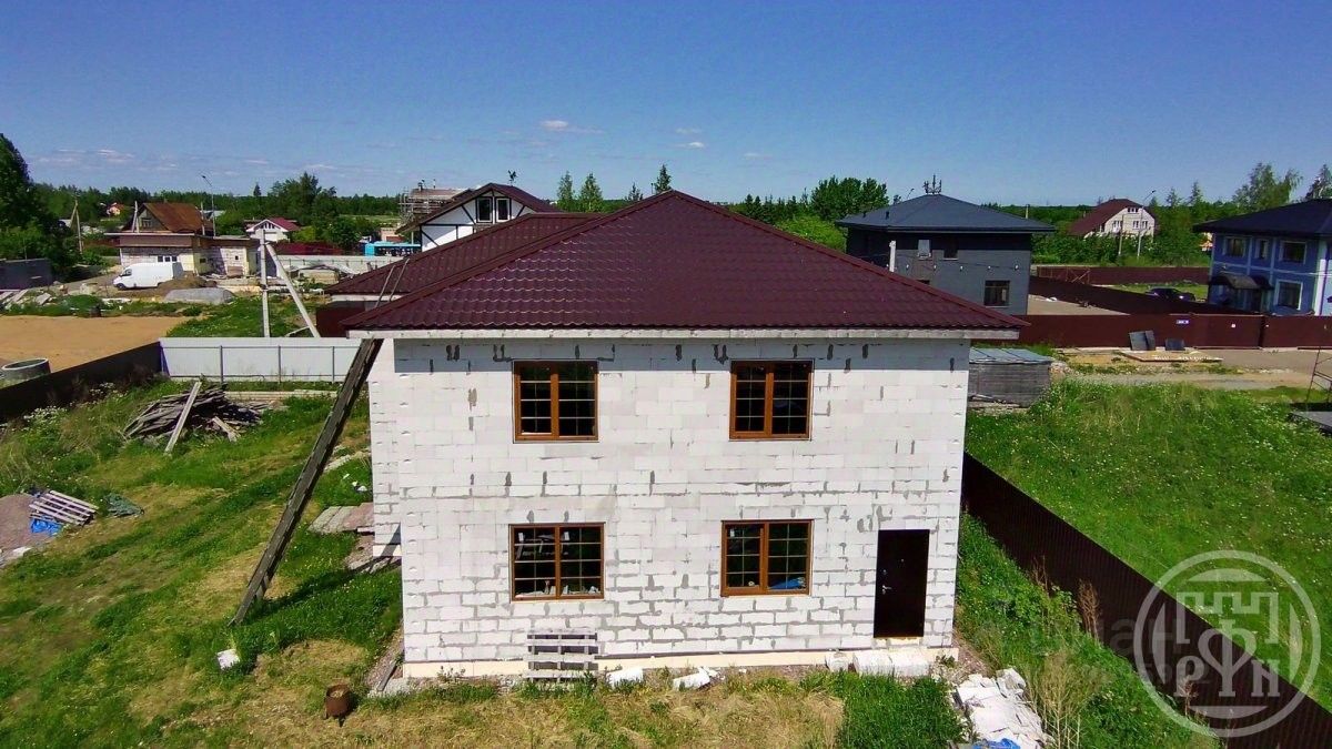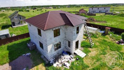 333562 Продается 2-х этажный коттедж, построенный из газобетона (толщина 375 мм и 300 мм), перегородки 200 мм. Дом стоит на монолитной плите 300 мм по всему периметру, основание песчано-щебеночная подушка. Межэтажное перекрытие монолитная плита 180 мм с армированием в два ряда. Чердак не утеплен, крыша вальмовая четырехскатная металлочерепица. Установлены стеклопакеты Veka с золотыми шпросами. Дом без отделки. Имеется в наличии на весь первый этаж керамогранит по дизайн проекту. Установлены теплые двери с терморазрывом. Участок 10 соток, на участке имеется скважина 30 метров, паспорт на скважину. Электричество 15кВт подключено. Забор по периметру металл. Дом оформлен в собственность, имеется милицейский адрес. Территория оживленно застраивается, соседи тихие, спокойные. В пешей доступности магазины "Магнит", "Верный" , также недалеко находятся магазины "Леруа Мерлен" и "Лента". В окружении много парков для прогулок, озер, живописных мест. КАД в 5-ти минутах езды. Напротив дома имеется автобусная остановка общественного транспорта. В ближайшем будущем планируется газификация Д.Ольгино.